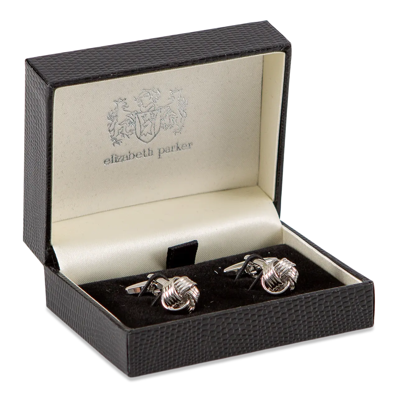 Manchetknopen in de vorm van een bachelor knot. 100% Sterling zilver manchetknopen.