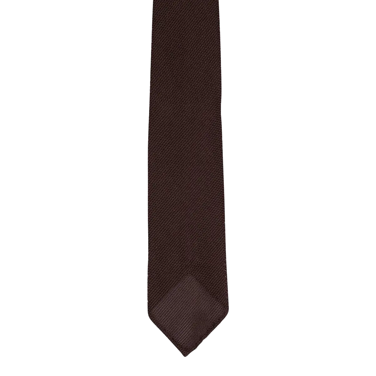 Zijden ongevoerde das met ‘handrolled ends’, handgemaakt in Italie. De das is 8cm breed.