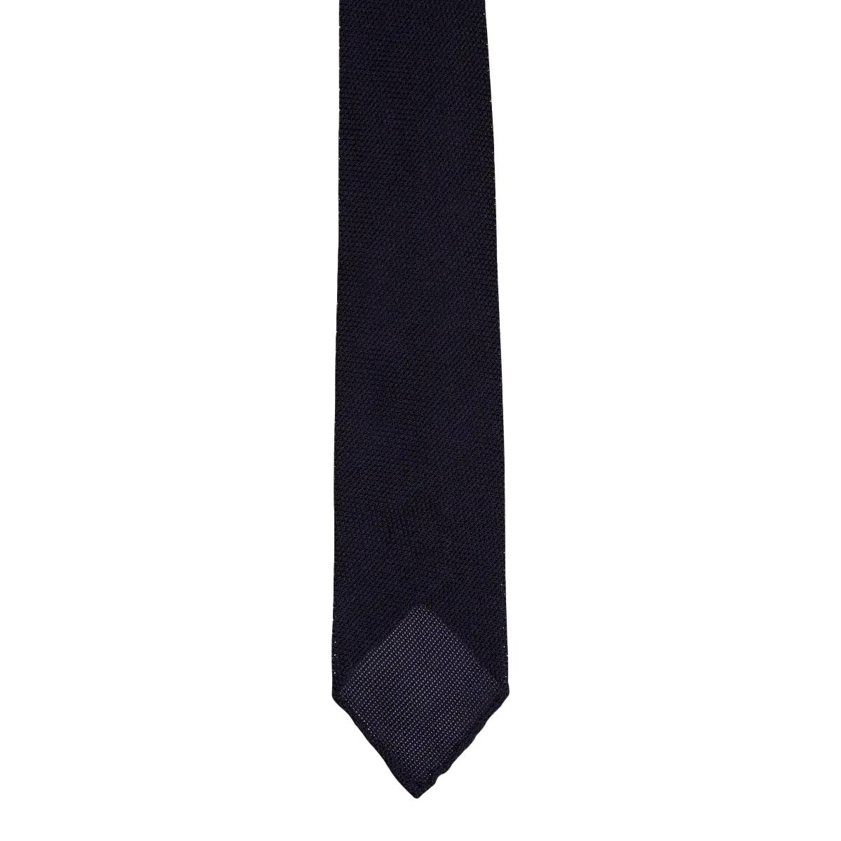 Zijden ongevoerde das met ‘handrolled ends’, handgemaakt in Italie. De das is 8cm breed.