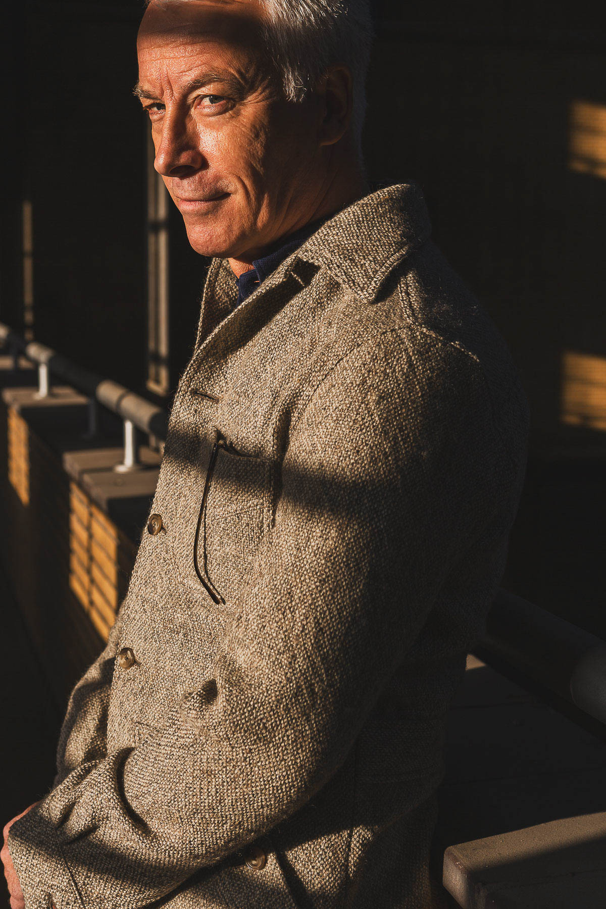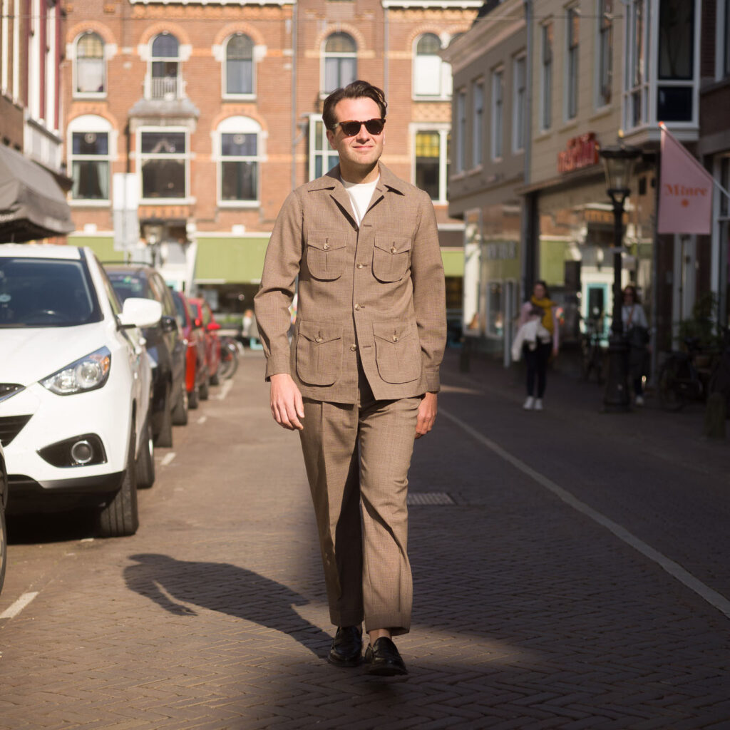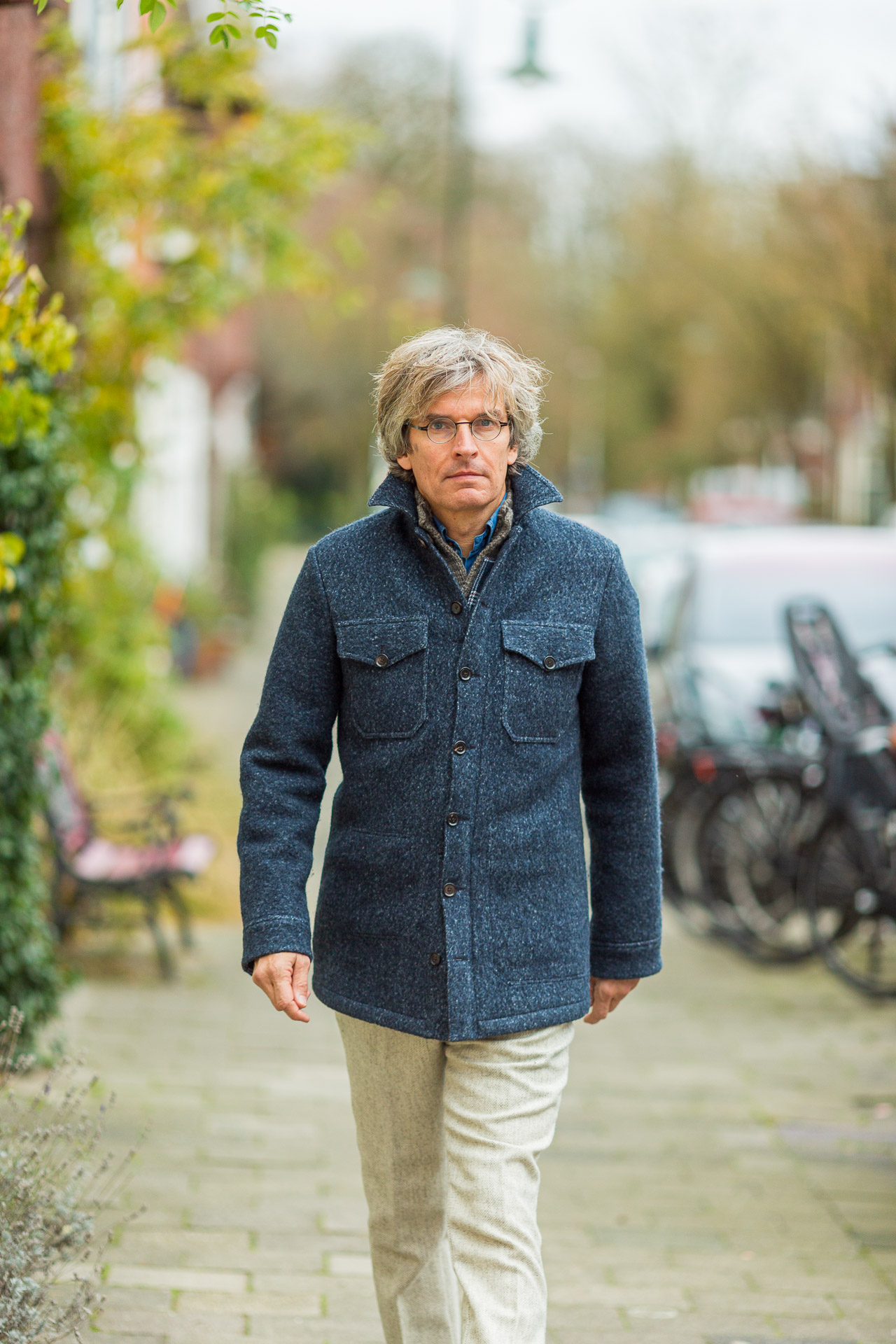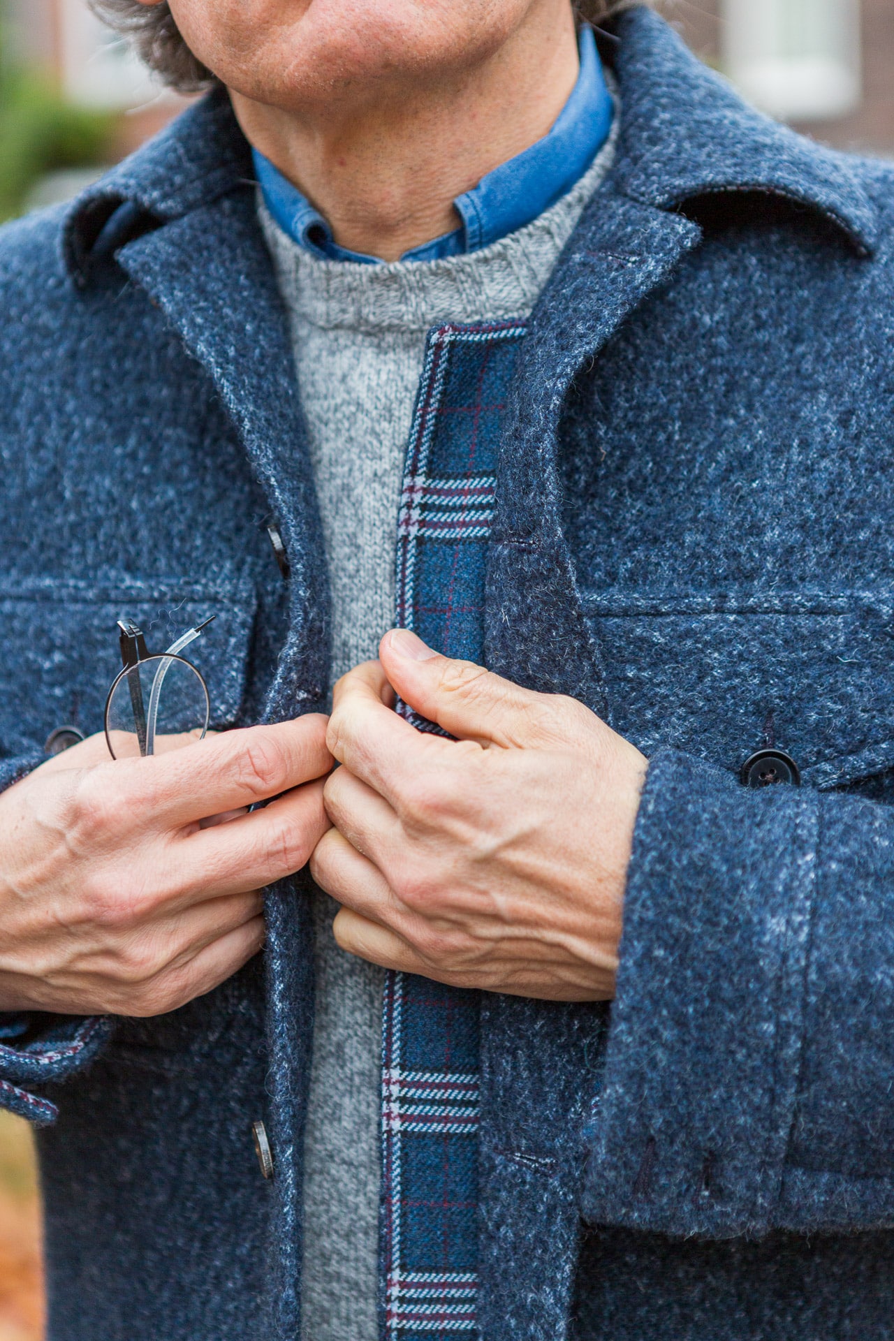 De urban in een (Dutch) tweed draag je fijn in de winter als buitenjas. Handen in schuine lijstzakken, als je wilt tot bovenaan dichtgeknoopt en door de plooi in de rug kun je er makkelijk in bewegen.